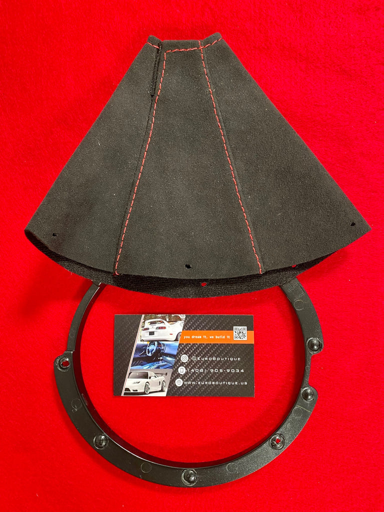 Alcantara Shift Boot   enhance your driving experience with this exquisite shift boot from hardmotion, crafted from premium alcantara and accented by red stitching. All shift boots are made from premium, double layered materials.  custom made, shift boot.  made to order with authentic alcantara suede.  buy new shift/brake boots for your car made of. Premium alcantara suede shift boot. . Alcantara Shift Boot.