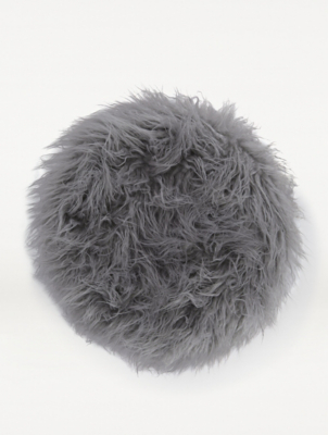 Grey Mongolian Faux Fur Seat Cushion Pad Home at ASDA