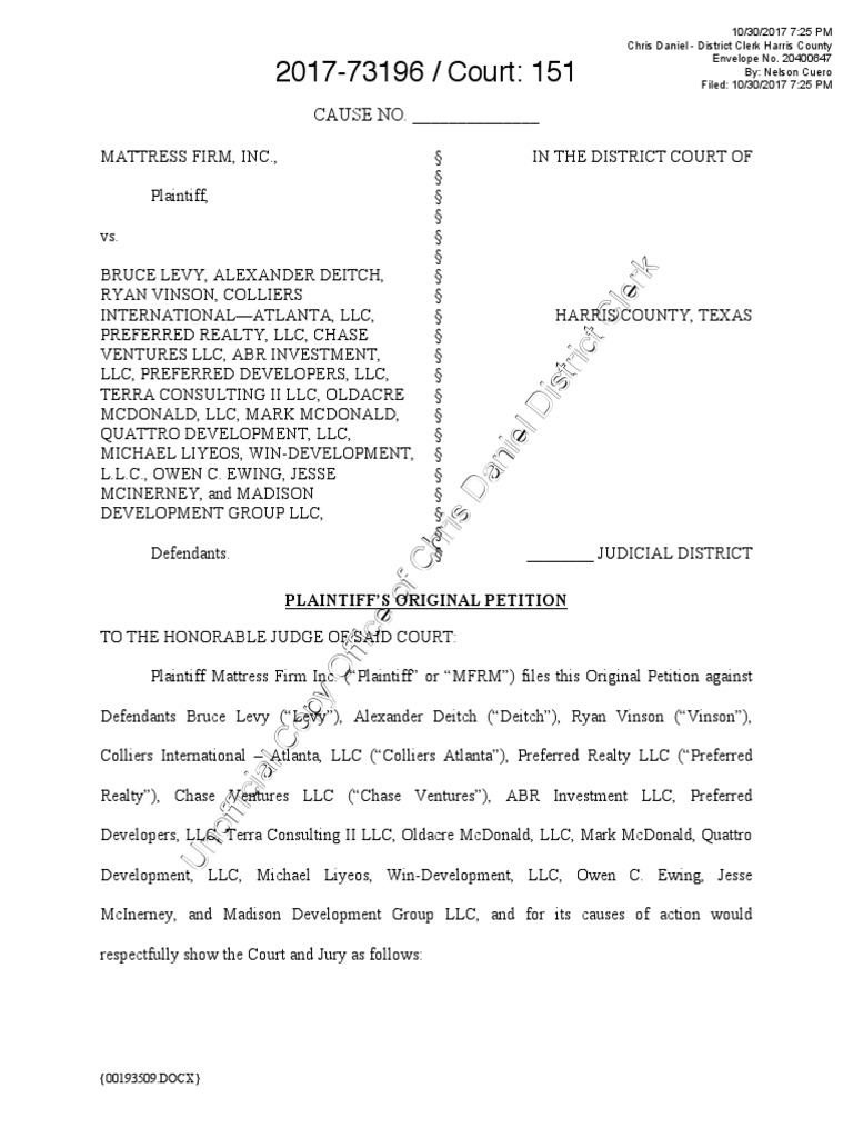 Mattress Firm Lawsuit PDF Class Action Piece Work Mattress Firm Lawsuit Settlement One of the world's largest mattress retailers has put to bed its lawsuit against two former executives and a former colliers atlanta. For its part, mattress firm has “thus profited enormously from its failure to disclose the product defect sooner,” the complaint alleges. The mattress company has agreed to pay $4.9million. In the lawsuit, plaintiffs antonio payero and adam maldonado.. Mattress Firm Lawsuit Settlement.