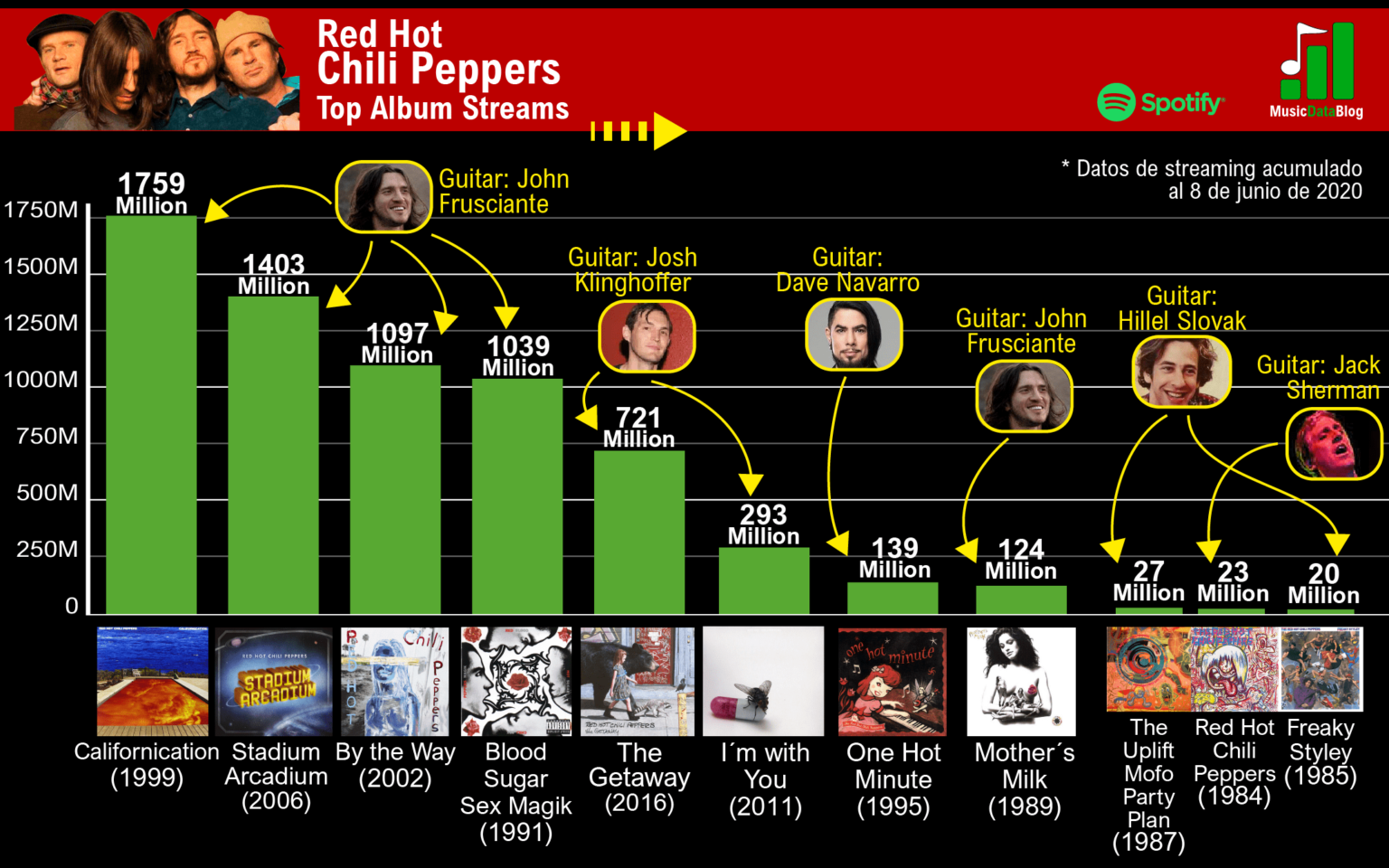 Discografía de los Red Hot Chili Peppers rankeada según su streaming en