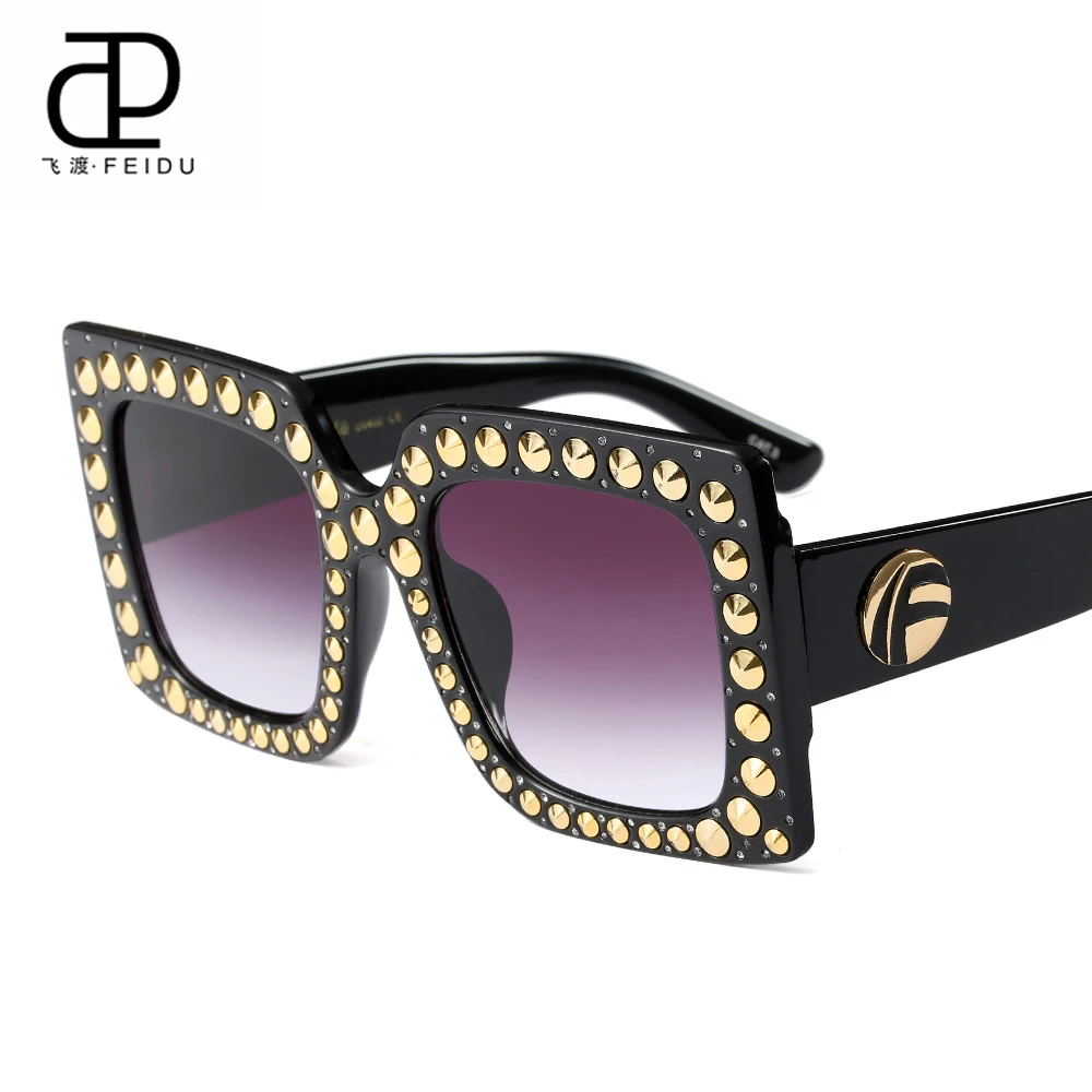 FEIDU New Cool Rivet Sunglasses for Women Brand Design Sun Glasses for