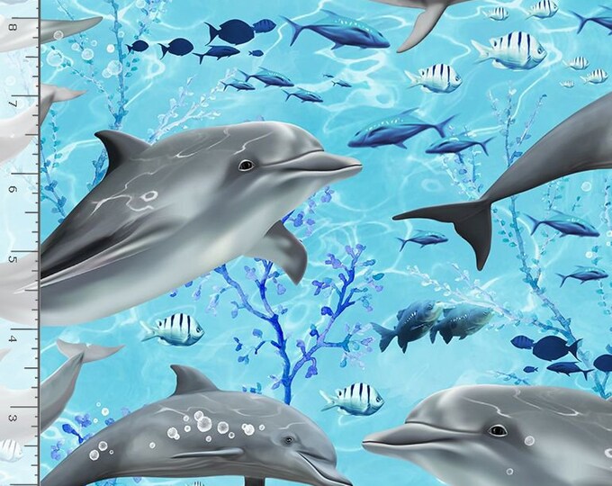 Dolphin Fabric by Half Yard, Blue Ocean Fabric, Printed Quilting Cotton