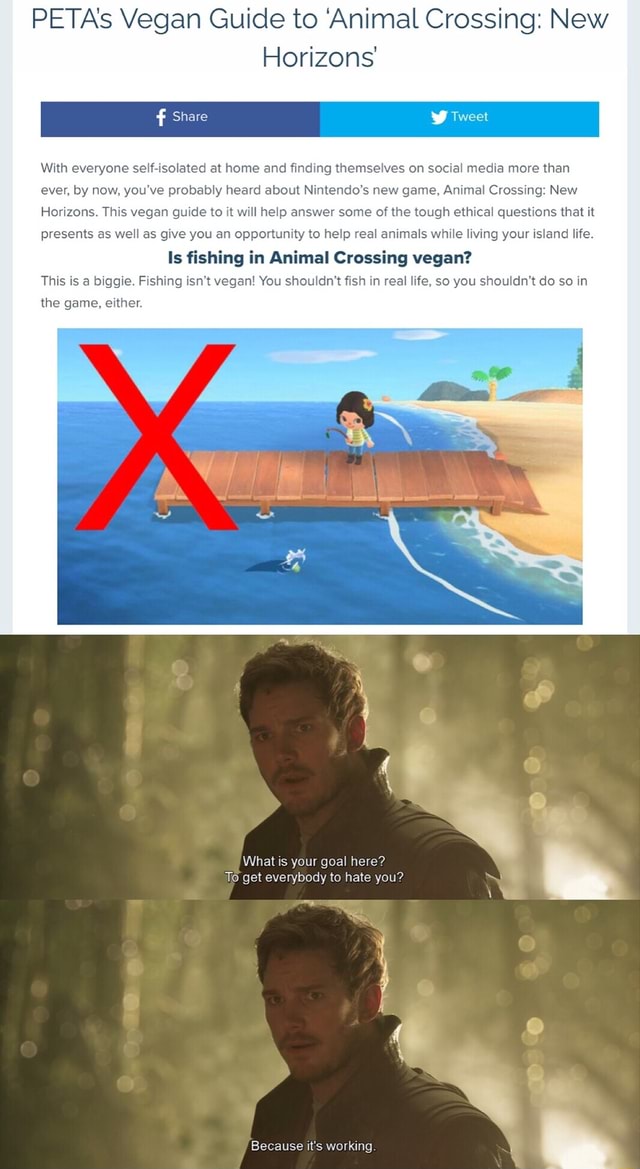 Animal Crossing Vegan Guide by PETA Calls Out Gameplay Is Animal Crossing Vegan Peta (people for the ethical treatment of animals) has issued a 'vegan guide to animal crossing', listing all of the things you can and can't do to keep up with a vegan lifestyle. Is it ethical to play animal crossing: Peta, the people for the ethical treatment of animals organization, has posted a vegan guide to animal crossing: New horizons. Is Animal Crossing Vegan.