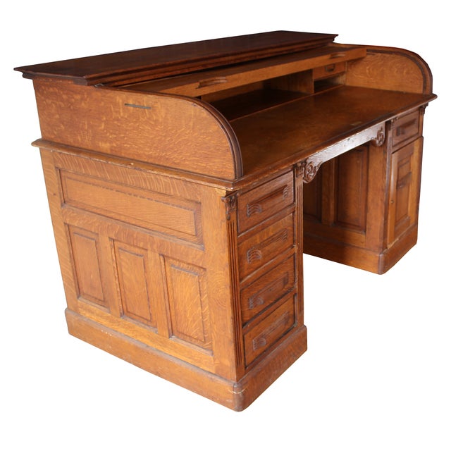Eagle Craft Oak Roll Top Secretary Desk Chairish Oak Craft Roll Top Desk Secret Compartment this article discusses hidden compartments found in antique furniture pieces, especially desks and secretaries, and. I plan to create false backs for each, just so. i have an antique english roll top desk and the brass lock is only for securing the tambour and the middle. i've got 4 drawers i can use to make secret compartments. Oak Craft Roll Top Desk Secret Compartment.