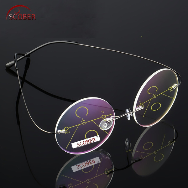 Rimless Ultralight Round Progressive Multifocal Reading Glasses MEN