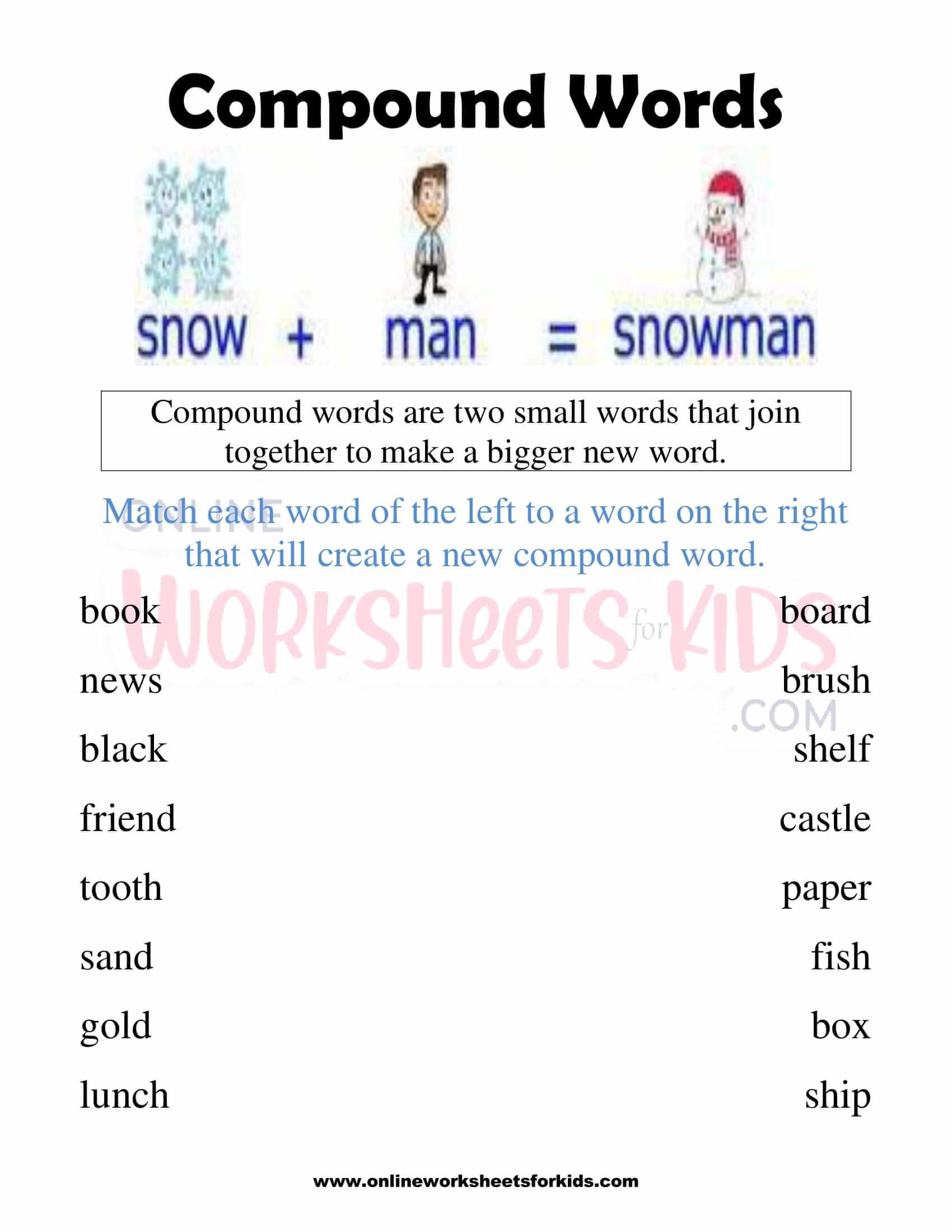 Compound Words Worksheets for grade 13
