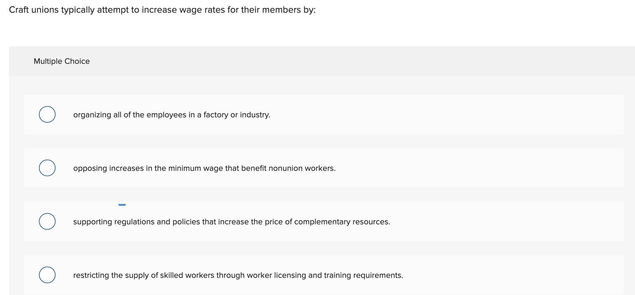 Solved Craft unions typically attempt to increase wage rates