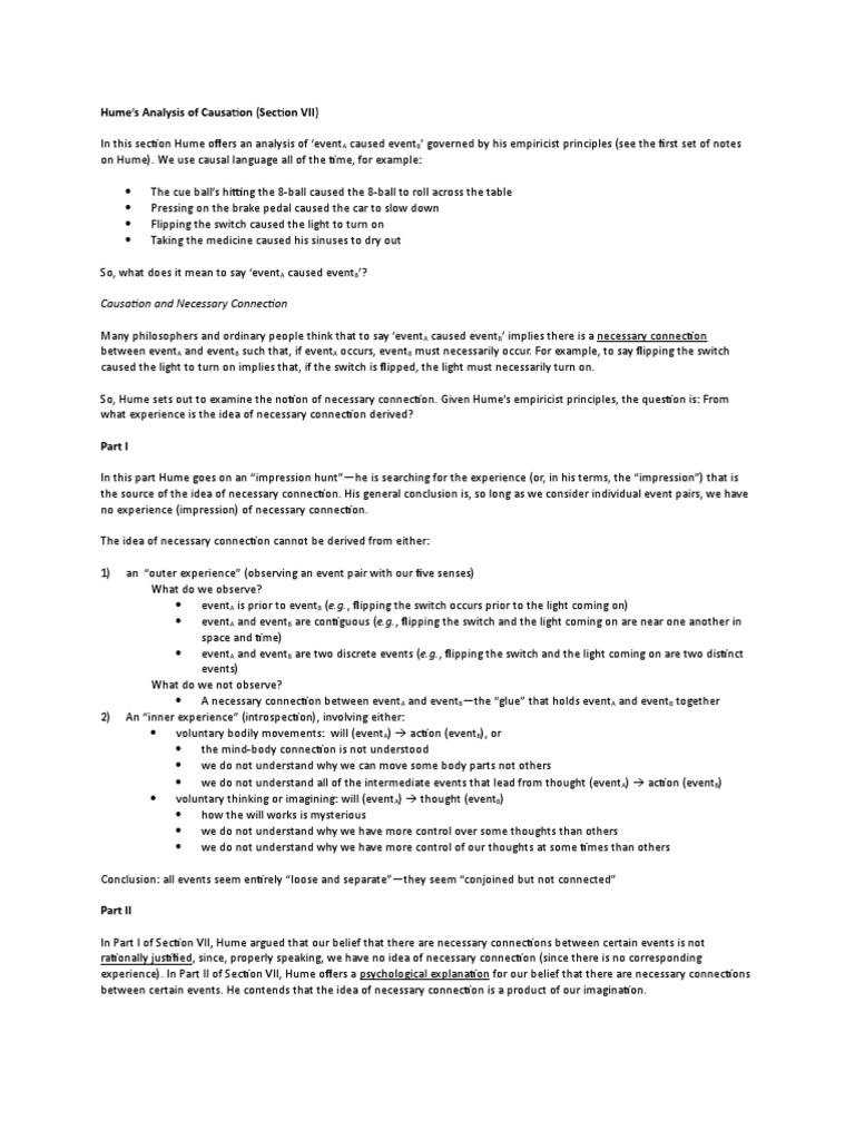 Hume's Analysis of Causation (Section VII) Causation and Necessary Connection PDF