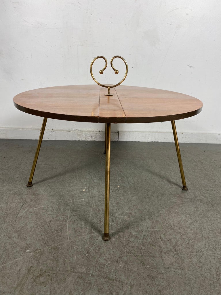 Unusual Modernist Collapsable Coffee/Cocktail Table,,Walnut and Brass