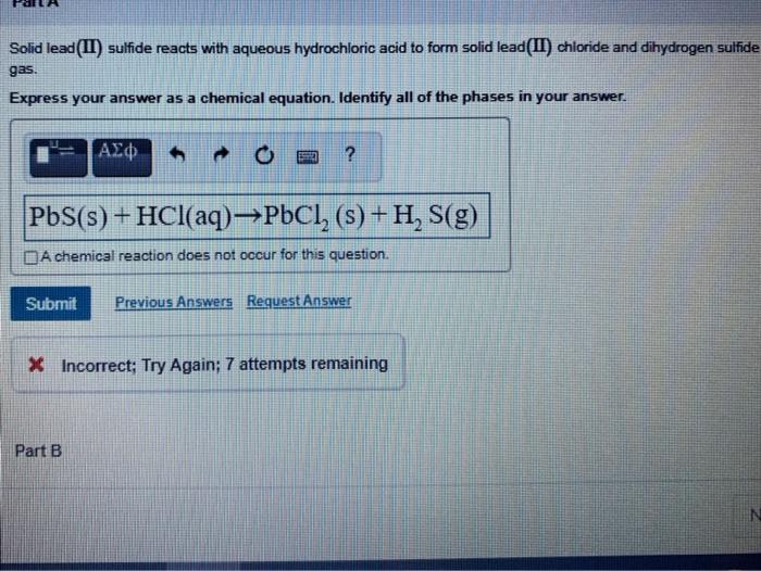 Solved Solid lead(II) sulfide reacts with aqueous