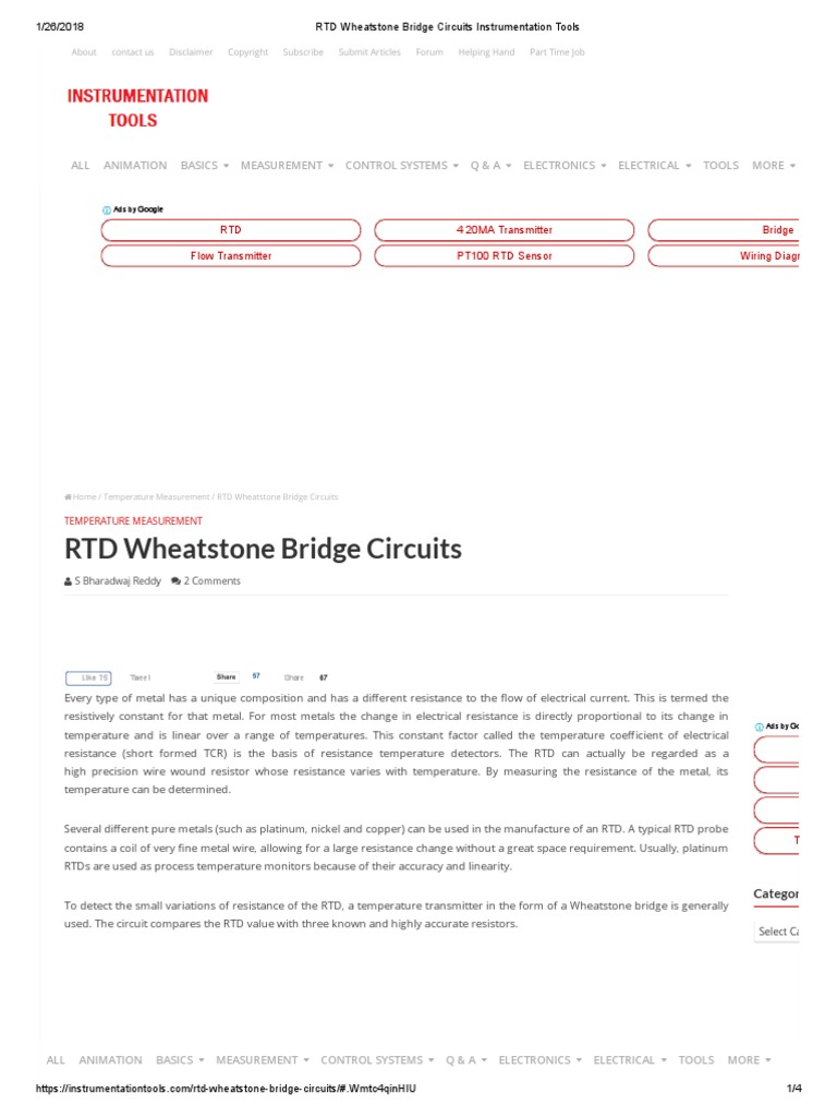 RTD Wheatstone Bridge Circuits. PDF Thermocouple Electrical Resistance And Conductance