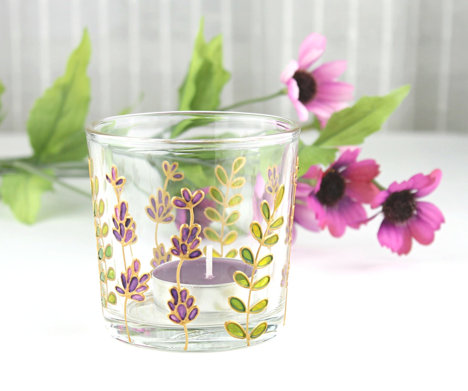 Glass Candle Light Holder Lavender Candle Holder Lavender Etsy UK