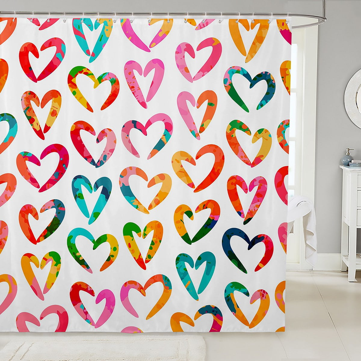 YST Watercolor Love Heart Waterproof Bathroom Curtain Rainbow Tie Dye