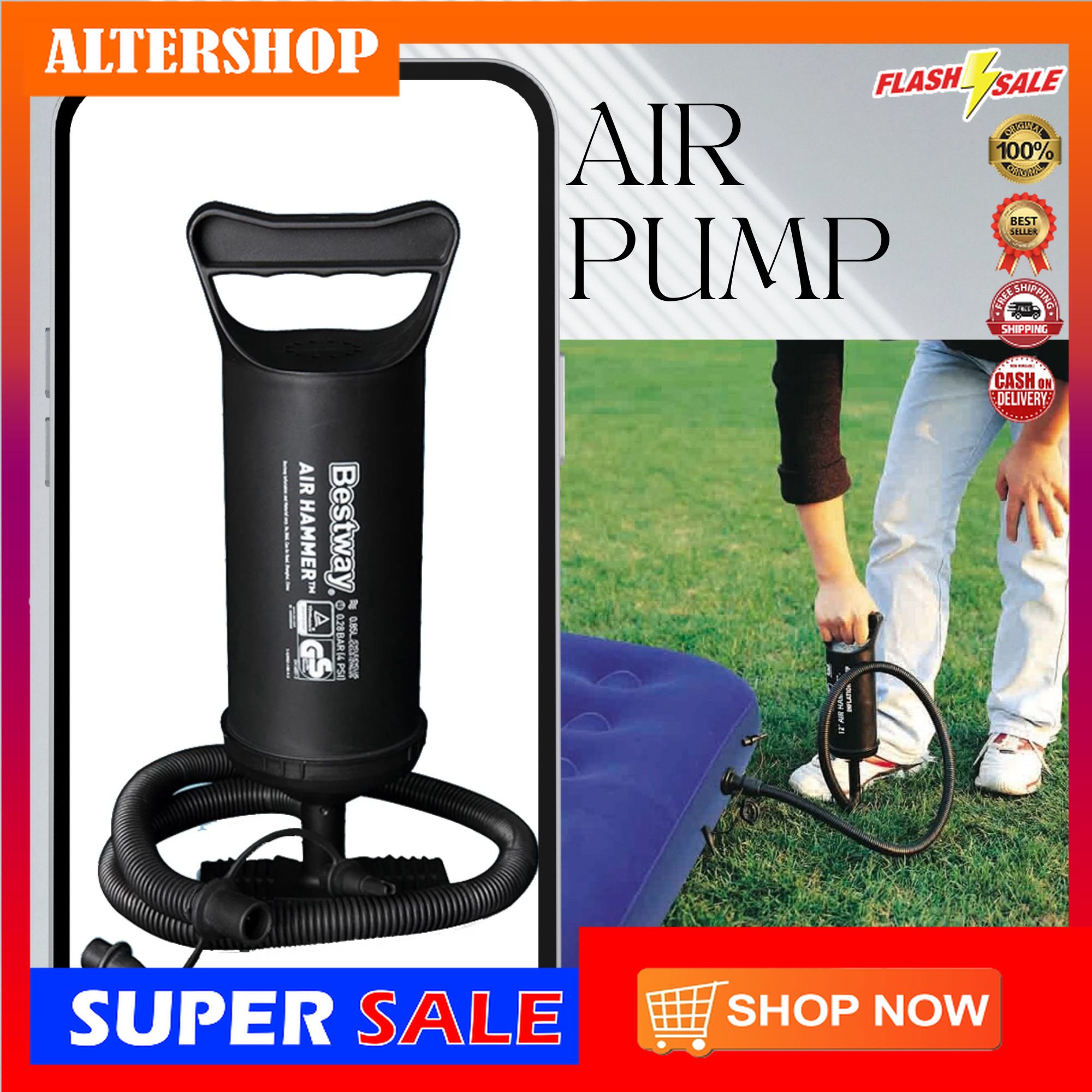 Hand Pump Double Quick Air Pump for Inflatable, Hand Held Air Pump