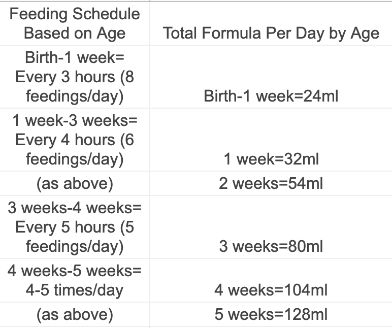 Newborn Baby Feeding Quantity Chart Chart Examples How Many Ounces Does A Newborn Kitten Eat If your kitten isn't gaining weight, consult your veterinarian. When it comes to how much to feed a newborn kitten, portion size is key. Newborn kittens will nurse from their mothers frequently, as often as every two hours during their first seven days of life. How often you should feed a kitten depends on her age. How many times a. How Many Ounces Does A Newborn Kitten Eat.