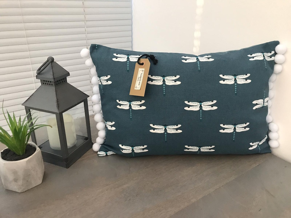 Sophie Allport Dragonfly Cushion With Pompoms Etsy Sophie Allport Dragonfly Cushion Featuring delicate wings on a midnight blue background. Elevate your home décor with handmade sophie allport dragonfly scatter cushions. Sophie allport dragonfly fabric cushion with cream back and central zip and pom poms filled with a lovely soft polyester inner measures approx. Sophie allport dragonfly fabric cushion with cream back and central zip and grey piping. Beautifully unique, this midnight. Sophie Allport Dragonfly Cushion.