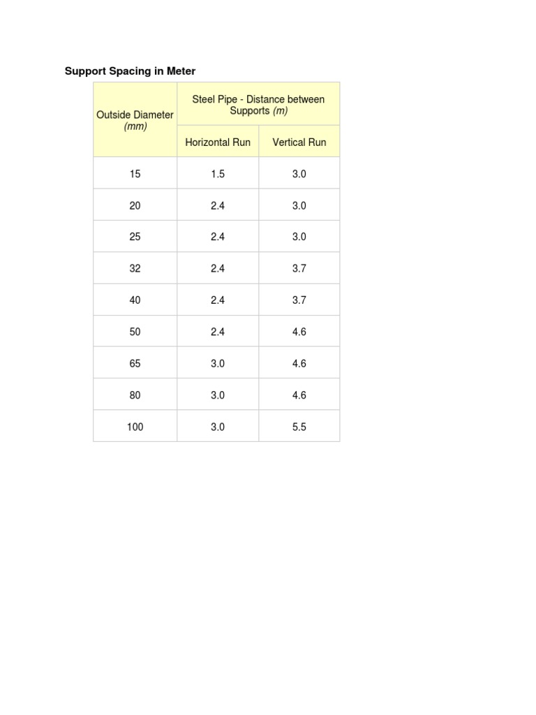 Ansi Pipe Support Spacing Table
