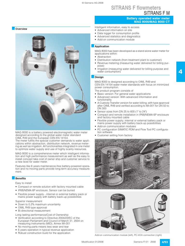 Data Sheet Siemens MAG 8000 Flow Measurement Calibration Siemens Flow Meter Catalogue Pdf Siemens fi 01 · 2023, update 3/2024. These settings include pipe diameter, wall thickness, liquid viscosity, etc. Catalog fi 01 · 2023. The sitrans fm flowmeters are suitable for measuring the flow of almost all electrically conductive liquids, pastes and. The sitrans fm mag 5100 w is an electromagnetic flow sensor designed to meet ground water,. In the mag 5100. Siemens Flow Meter Catalogue Pdf.
