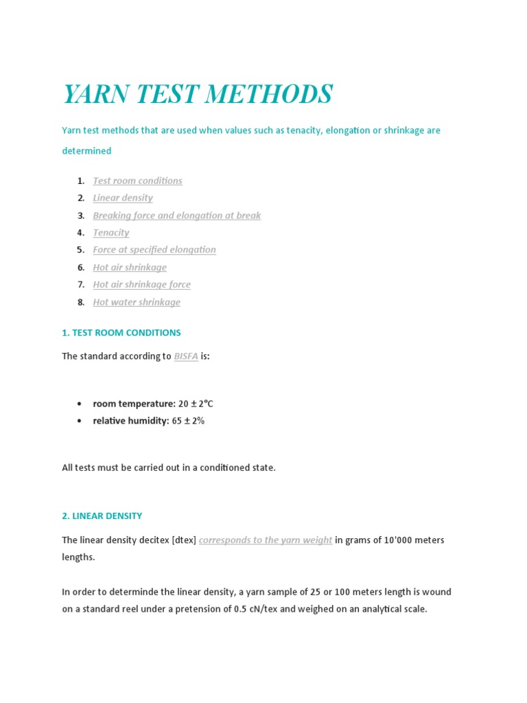 Yarn Test Methods Yarn Test Methods That Are Used When Values Such As