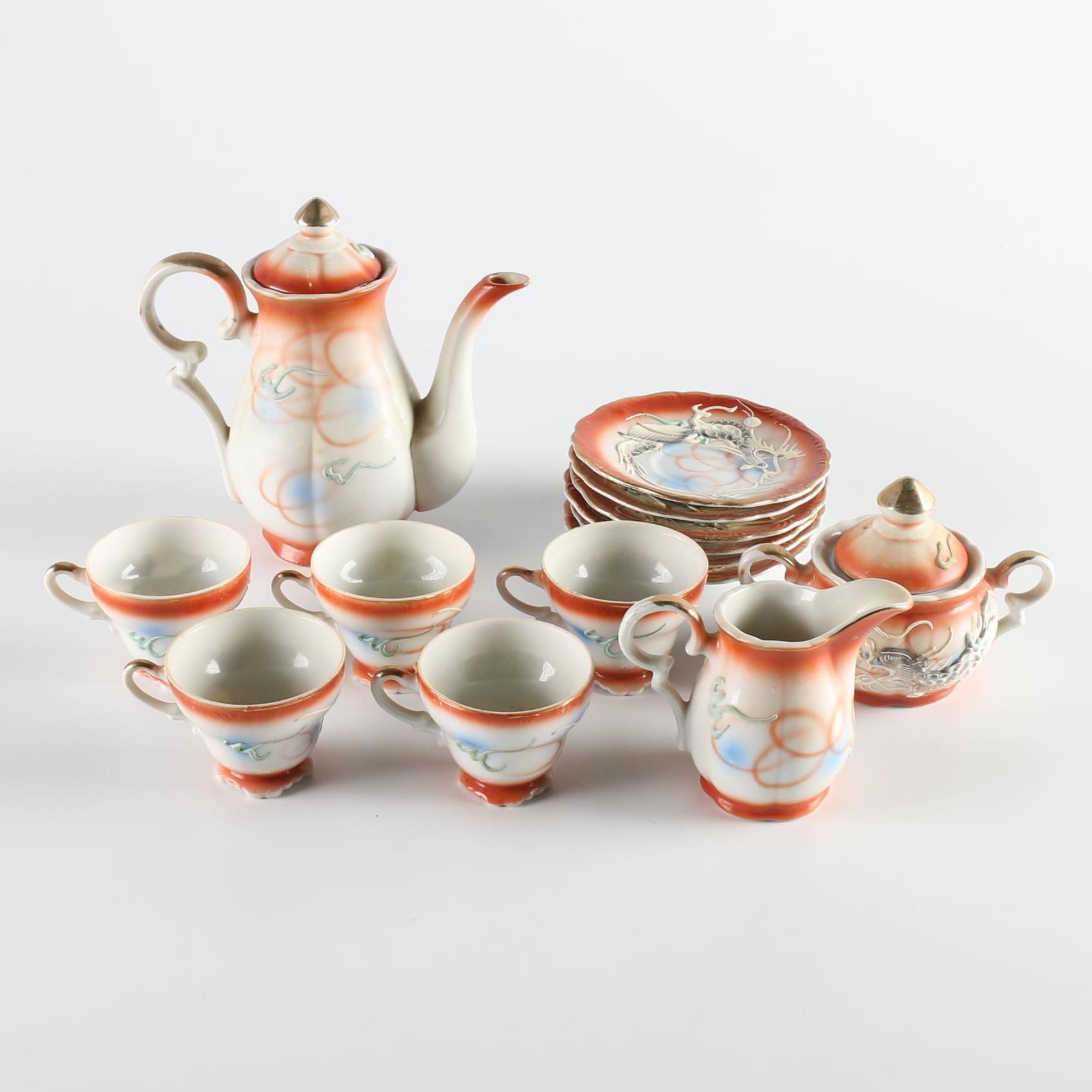 I have an antique 6 piece Dragon type tea set hand painted Betson Hand Painted Betson Dragon Tea Set This collection includes five teacups, six saucers, one. antique japanese tea set, dragon, set of 15, betson's hand painted in japan. antique japanese tea set, dragon, set of 15, betson's hand painted in japan | collectibles, cultures & ethnicities, asian | ebay! vintage hand painted jb betson's bone china dragon tea set with raised moriage decor, vintage. Hand Painted Betson Dragon Tea Set.