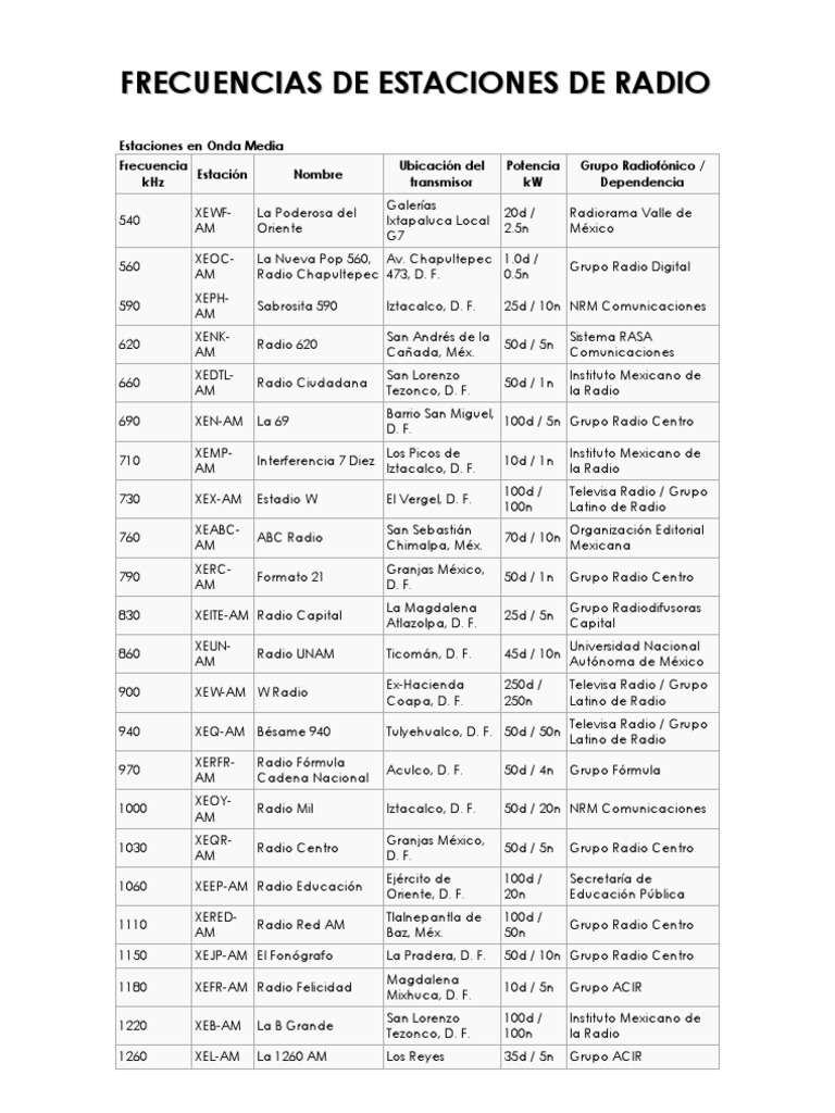 Frecuencias de Estaciones de Radio[2] Radio Radiodifusión