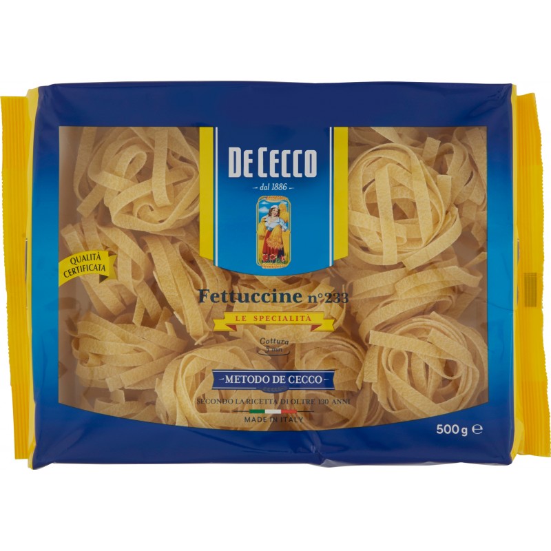 De Cecco Egg Fettucine Mixitalia / Vini D'italia Fettuccine De Cecco Fettuccine are part of the long, flat pasta family and is very versatile so can be combined with many sauces. They are also excellent for preparing. They are recommended in particular in pasta dishes with tomato and meat ragùs. Les fettuccine sont très polyvalentes et conviennent donc à une variété de sauces. Notre engagement pour garantir à tous le plaisir. Fettuccine De Cecco.