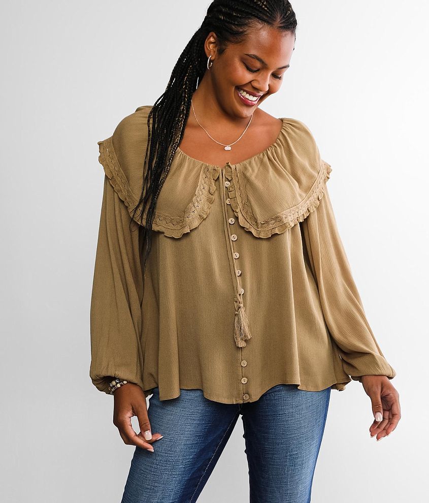 Gimmicks Lace Peasant Blouse Women's Shirts/Blouses in Brown Buckle