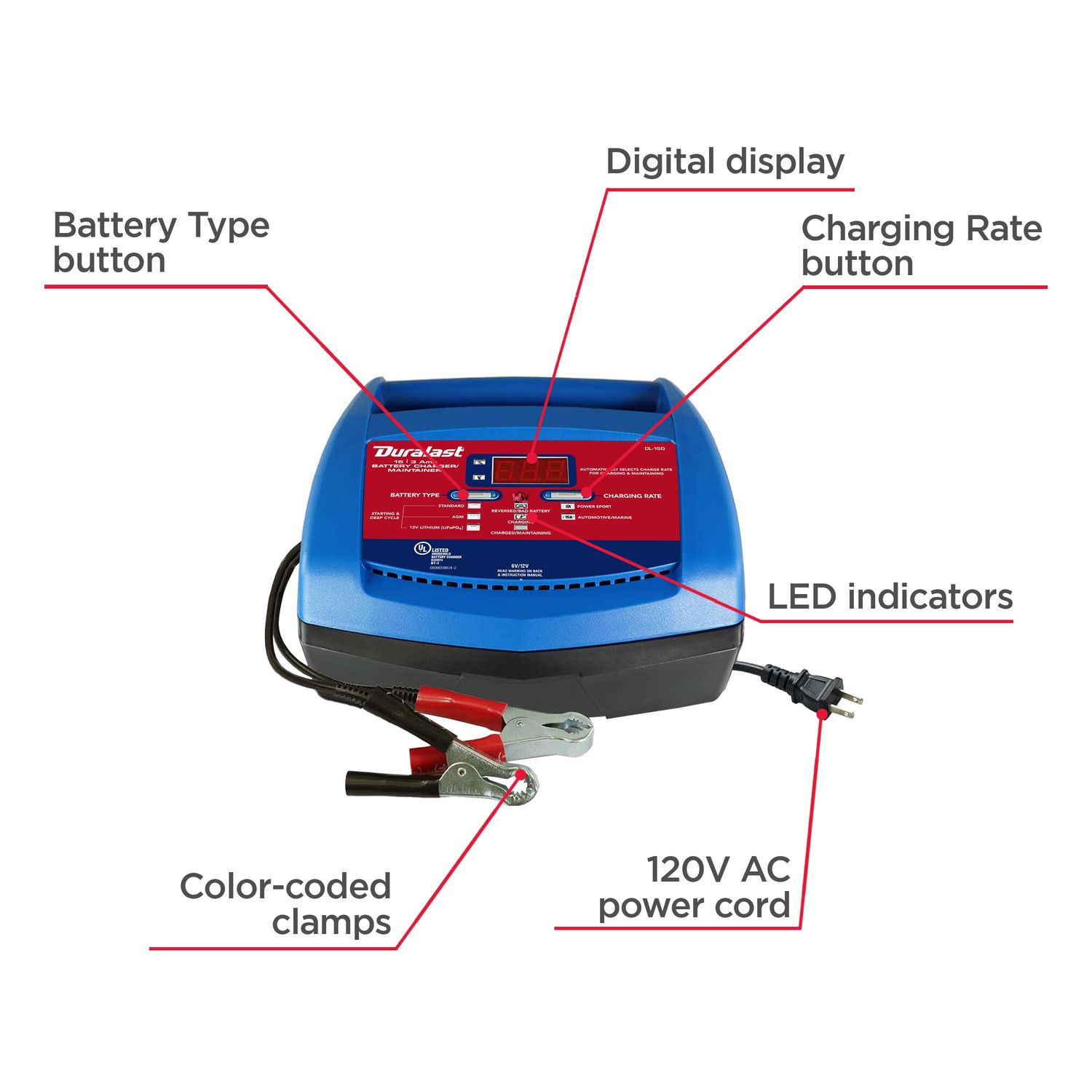 Duralast Battery Charger with Engine Start Duralast Battery Charger Settings Any trickle charge or genial battery charger will work. Ideally, you should refer to your car’s manual for. To connect the duralast battery charger to your vehicle’s battery, follow these simple steps: As a rule of thumb, if the car is not drive in two to three weeks, i would give it a top up. First, plug in the duralast.. Duralast Battery Charger Settings.