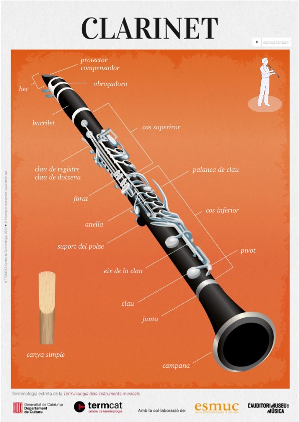 Parts of the player, Music poster Les Parts Del Clarinet The mouthpiece, barrel, upper joint, lower joint, and bell. En aquesta infografia interactiva podeu consultar els termes que fan referència a les parts del clarinet. El termcat presenta una nova infografia interactiva amb què s’il·lustren els noms de les parts del clarinet. This guide is for the most common of the different types of clarinet, which is the clarinet in. Les Parts Del Clarinet.