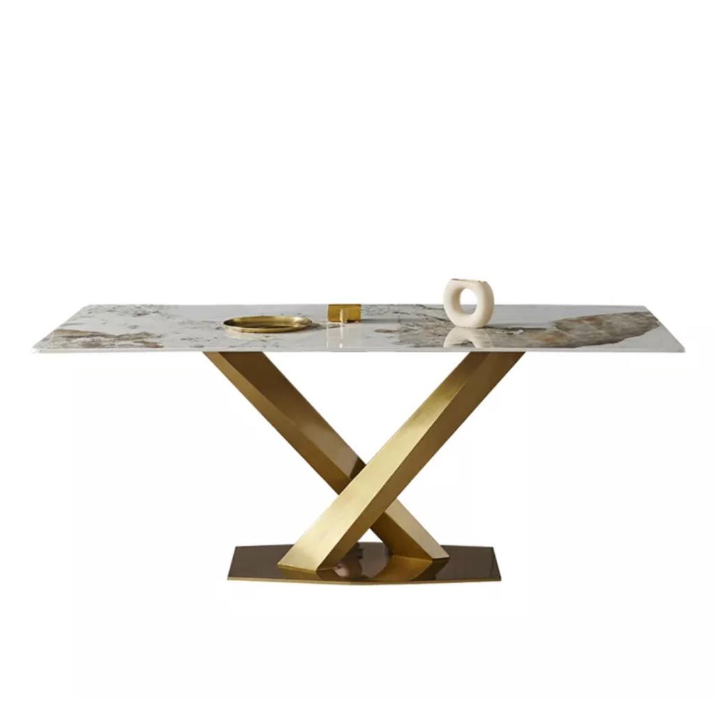 [READY STOCK] GLOSSY SINTERED STONE Dining Table / Stainless Steel