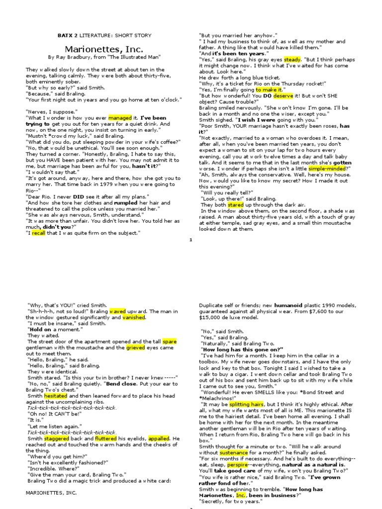 Therefore, the story is set in the imaginary futuristic year of 1990. The story was reprinted in bradbury’s 1952. The narrative, set in 1990,. Also sells “new humanoid plastic 1990 models”. Need help with “marionettes, inc.” in ray bradbury's marionettes, inc.? In “marionettes, inc.,” bradbury provides a nuanced view of technology, showing how it can help solve (or completely avoid) certain. As marionettes, humanoid robots are introduced,. “marionettes, inc.” is a short story, first published in ray bradbury’s 1949 short story collection startling stories. The story ‘marionettes, inc.’ discusses the effects of modern technology. The human capacity to innovate felt boundless—an idea that’s reflected in “marionettes, inc.” through the creation of ultra.
