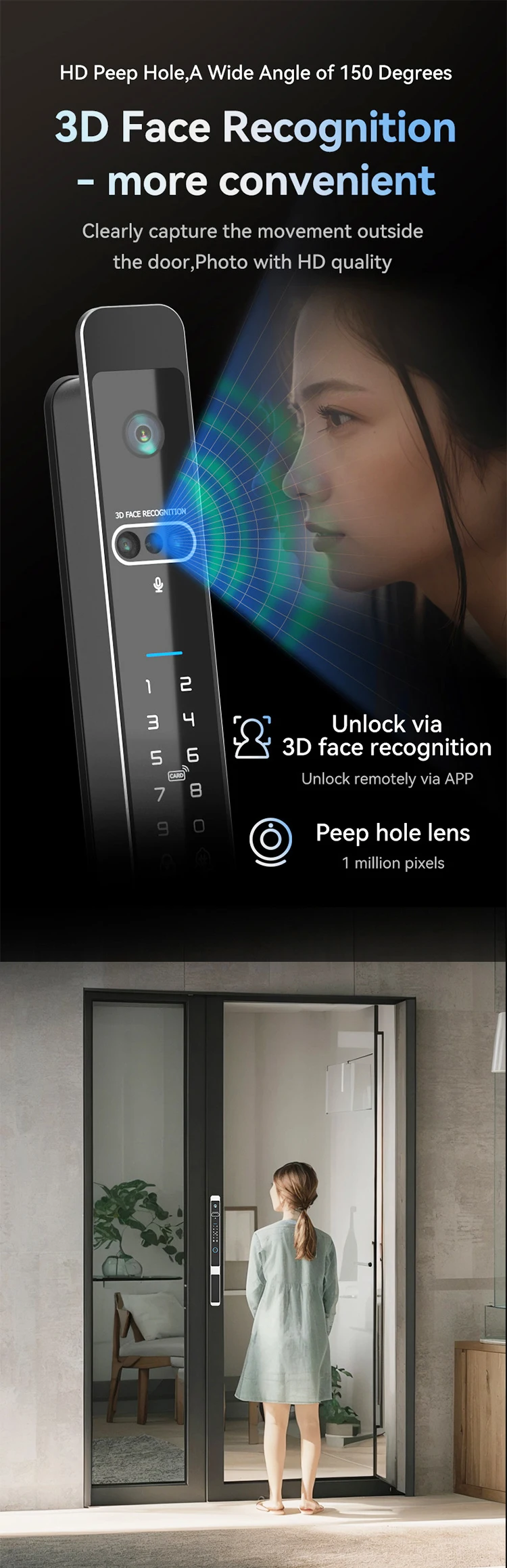 Smart Camera door Lock 3D Face Unlock Door Locks With Camera Consider getting a smart door lock with a camera to monitor visitors. For homeowners looking to add better video quality and a sleeker smart lock/video doorbell, the eufy video doorbell s330 is the next best choice. Looking to add comprehesive protection to your house? The lockly vision elite is a smart door lock combined with a doorbell camera. Door Locks With Camera.