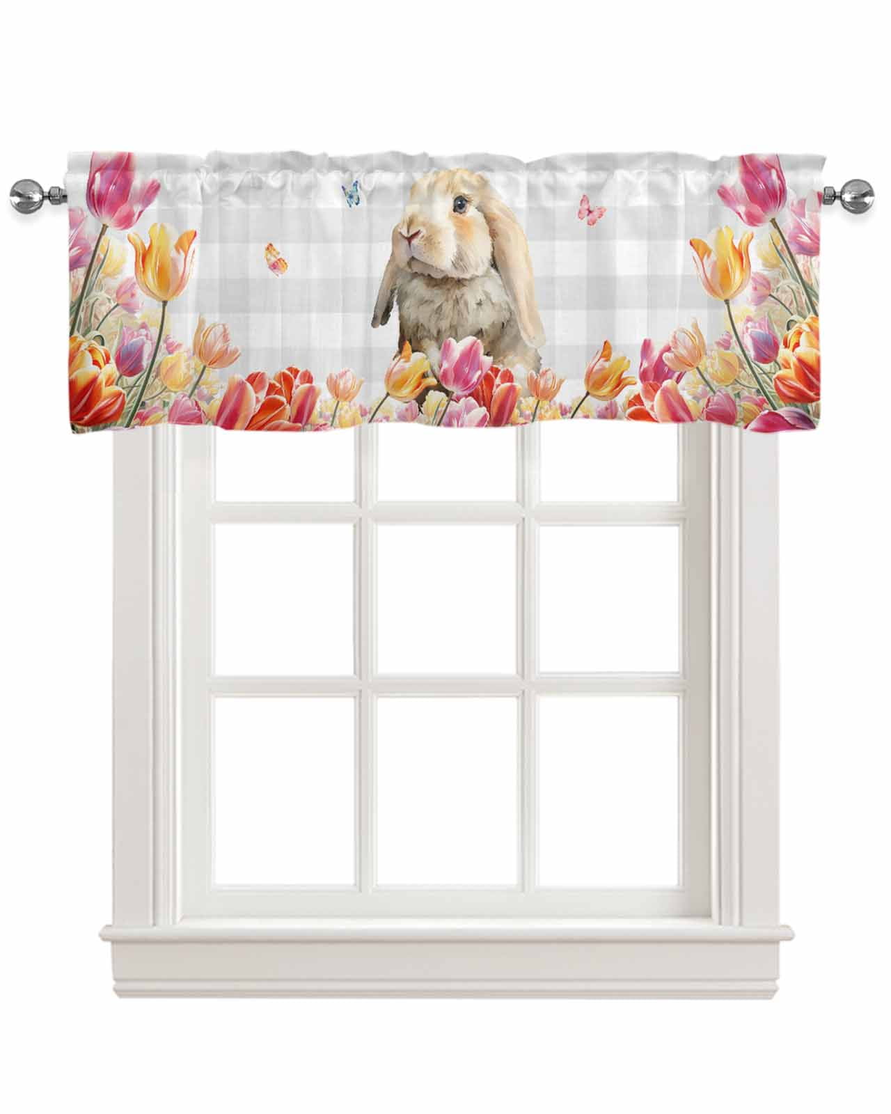 Easter Bunny Linen Curtain Valance for Bedroom/Bathroom/Kitchen/Office