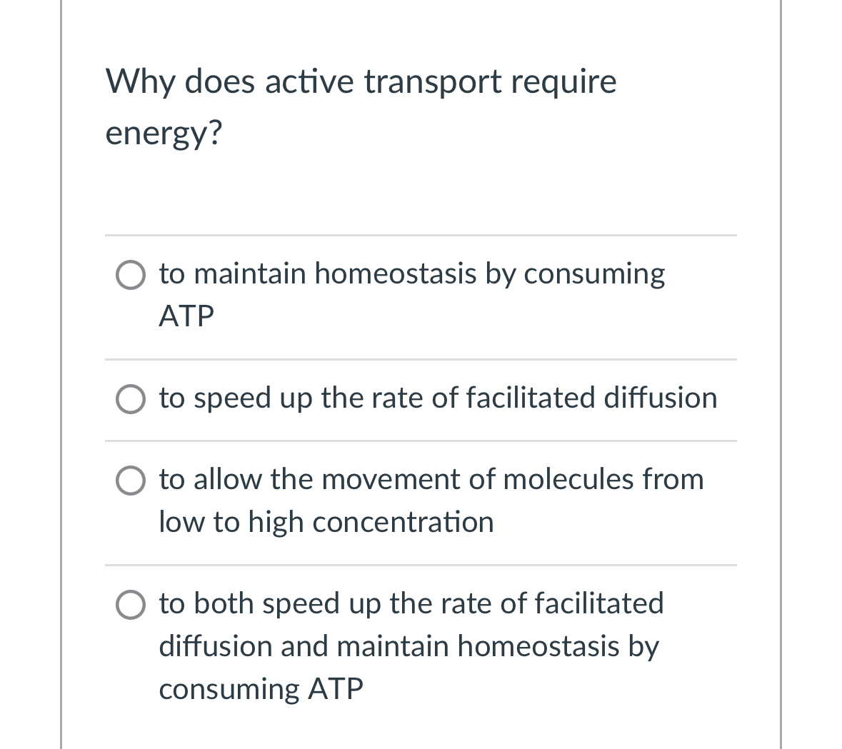 Solved Why does active transport require energy?to maintain
