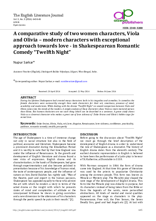 (PDF) A comparative study of two women characters, Viola and Olivia