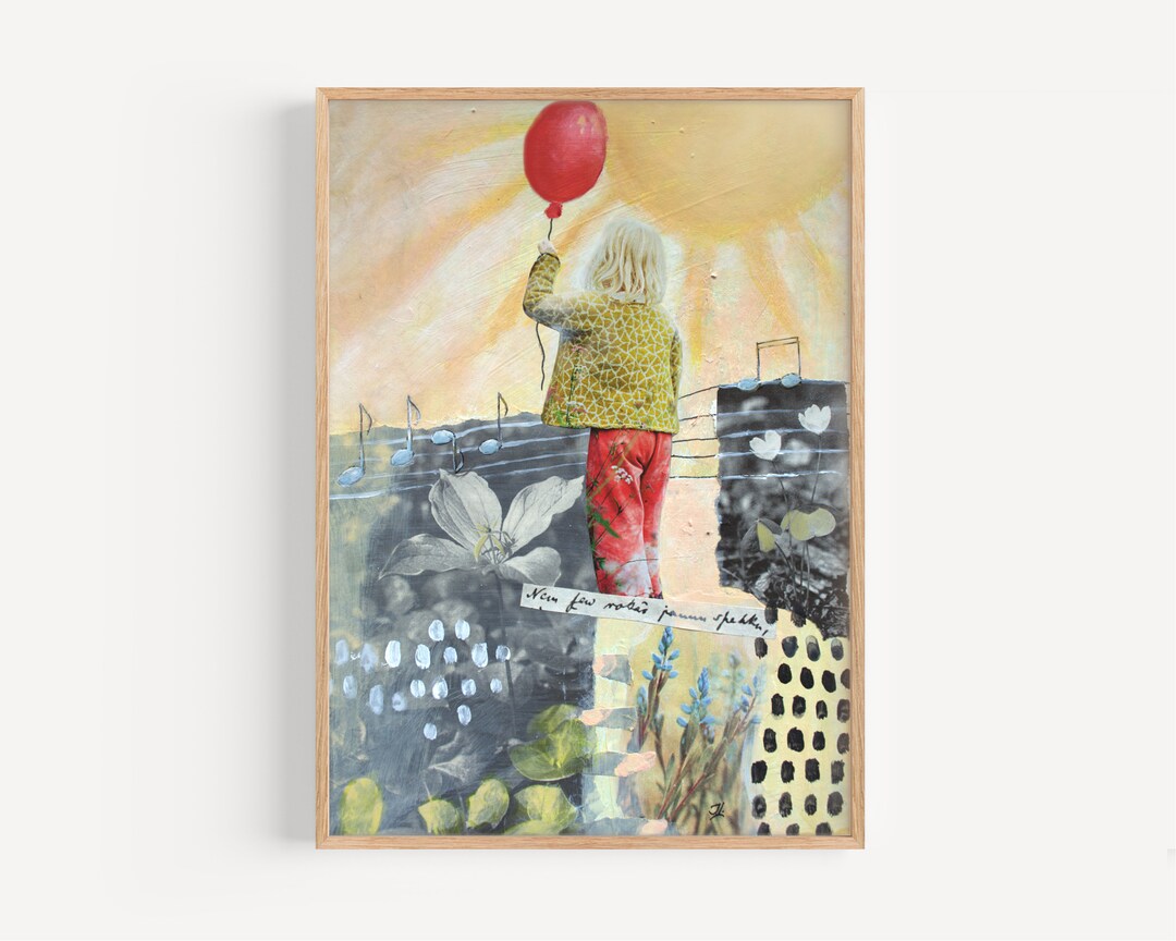 Printable Mixed Media Art Girl With Balloon Abstract Art Etsy
