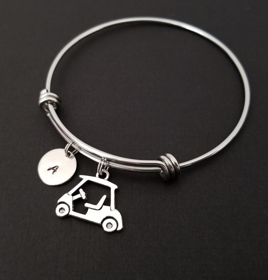 Golf Cart Bracelet Golfer Bangle Bracelet Golf Charm Bracelet Initial
