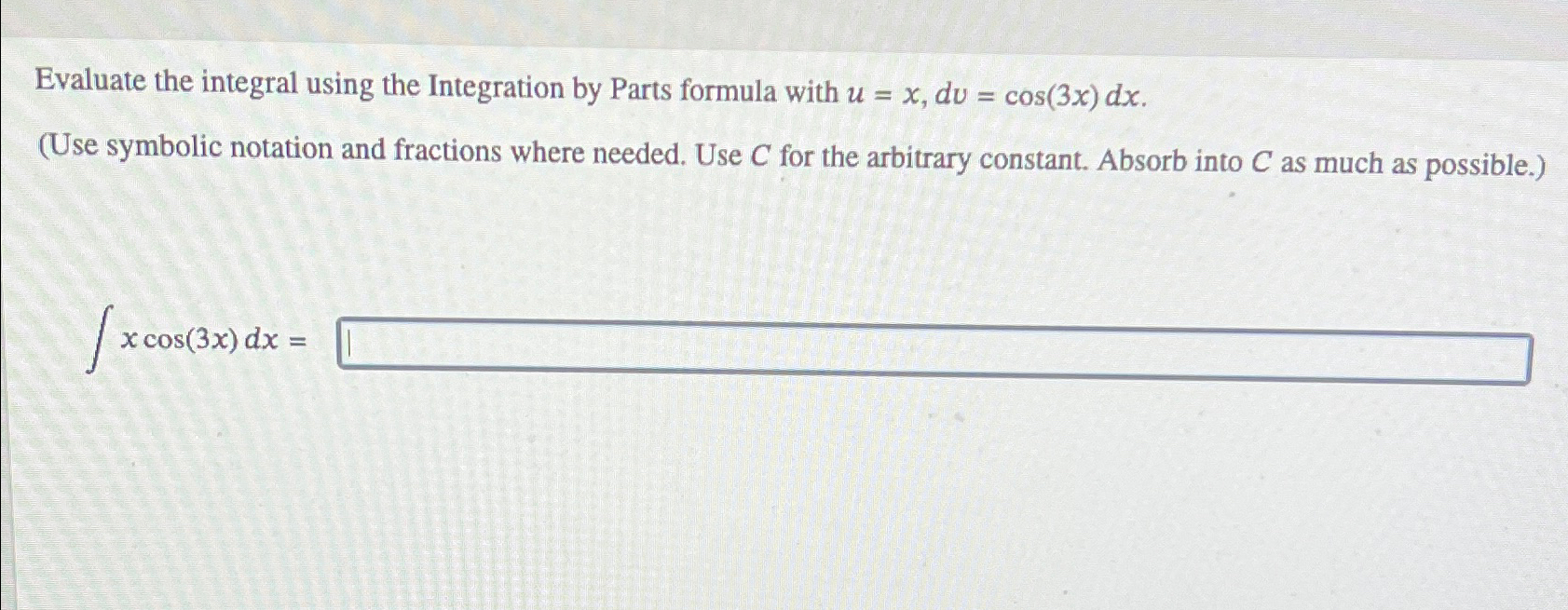 Solved Evaluate the integral using the Integration by Parts