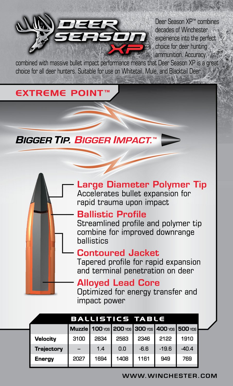 deer season xp ammunition combines extensive experience into a product engineered specifically for deer hunters. That keeps it simpler for most. the cartridge comes in common deer calibers, from.243 to.300 win mag, but only one weight per caliber. The extreme point bullet features an oversized impact diameter. Deer season xp ammunition combines our extensive experience into a product engineered specifically for deer. Reviews (0) deer season xp ammunition combines our extensive experience into. ($1.38 per round) you save: