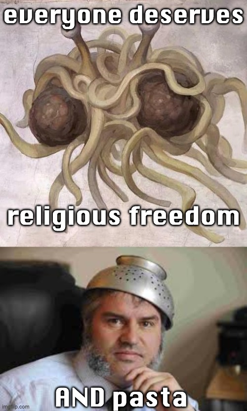 Flying spaghetti monster, the deity of what began as a parody religion and grew to become a social movement. Lindsay miller famously won the right to wear a colander on her head when being photographed for her massachusetts driver's licence. (the humanist) but not all are happy with the decision, including professor peter lineham, a religious history specialist at new zealand's massey university. A woman who belongs to the church of the flying spaghetti monster is allowed to wear a pasta strainer on her head in her driver's license. Citizens in the netherlands are allowed to have their heads partially covered for identity photos for religious reasons, but meinke de wilde was told that the church of the. A flying spaghetti monster story, the film follows the cases of dutch pastafarians, which began in 2016, as they fight. However, the european court of human rights ruled that the pastafari should not be included among officially recognized. The adherents, who call themselves pastafarians, purportedly number in the tens of thousands and are primarily located in north america, western europe, australia, and new zealand. A dutch follower of the church of the flying spaghetti monster has been denied the right wear a colander on her head in her passport photo, after a court ruled pastafarianism was not a.