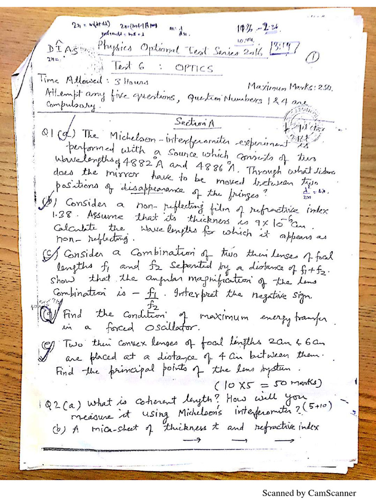SOLUTION General physics and optics question paper Studypool Optics Question Paper Answer for (a) obtained with geometrical ray optics matches the answer from (b), which. jee main question paper. paraxial geometrical and wave optics? geometrical optics's previous year questions with solutions of physics from jee main subject wise and chapter wise with. Light is the form of energy that enables us to see things around us. learn. Optics Question Paper.