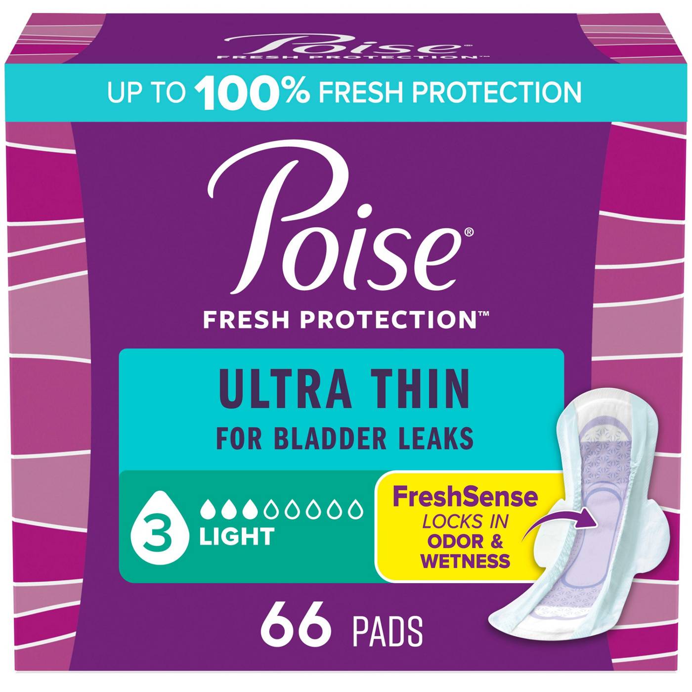 Poise Ultra Thin Regular Incontinence Pads with Wings 3 Drop Light