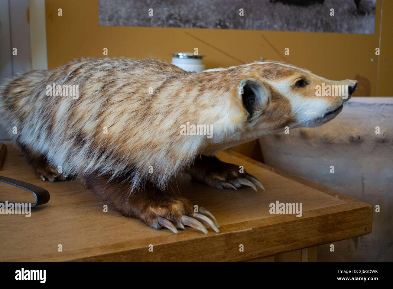 Badger stuffed badger taxidermy display stuffed animal Stock