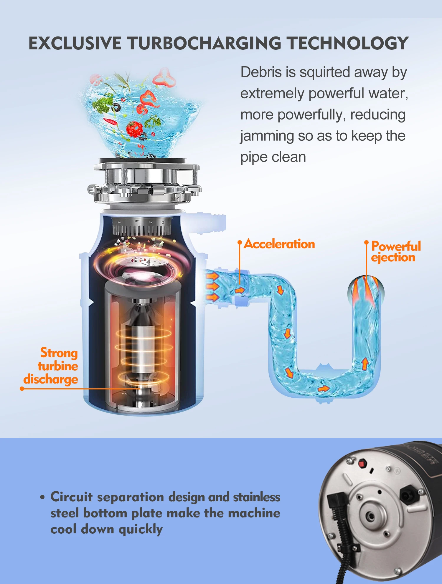 Household Food Waste Processor Continuous Feed Home Kitchen Garbage