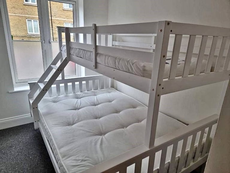 **brand New**trio Triple White Wood Bunk Bed in East Dulwich, London Gumtree Triple Bunk Double bed base and single bed top sleeps 3, age 6 ️ mattresses are in good condition, have always been protected. (can come with the mattresses) the bed has storage shelves. Black metal twinx3 size bunk bed with trundle. Sweet dreams triple bunk bed. Brilliant beds ideal for siblings sharing or having the grandkids over. New still in the box. Gumtree Triple Bunk.