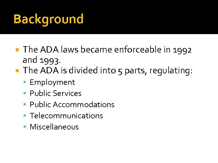 PPT Americans with Disabilities Act (ADA) PowerPoint Presentation Ada Laws Esa Find out how to get an esa letter, what rights you have, and what benefits you can enjoy. Learn how federal civil rights laws protect the rights of people with disabilities who use service animals or emotional support animals. Learn about the laws that protect your rights and benefits as an emotional support animal owner. Learn about the definition, rights,. Ada Laws Esa.