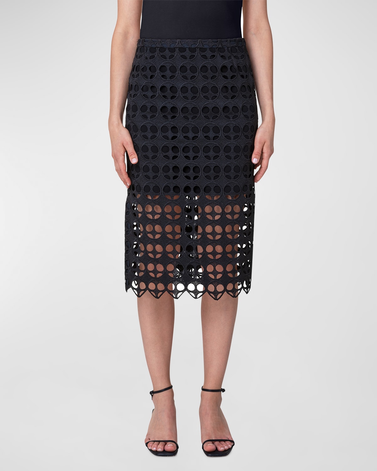 Akris punto Midi Dress w/ Cutout Embroidery Neiman Marcus