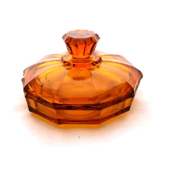 Art Deco Amber Glass Trinket Box Amber Glass Box by TwoTimeVintage