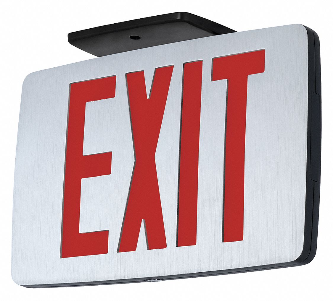 COMPASS Exit Sign Emergency Battery Backup, LED, Black, Red, 2 Faces Compass Exit Light Economical energy efficient life safety products suitable for use in commercial or light industrial applications. The cel is ideal for architectural applications and ofers surface and recessed mounting options. Red or green field selectable exit models. The exit panel can be ratcheted to various angles. The exit signs category features lighted led exit signs to comply with building fire codes. Compass Exit Light.