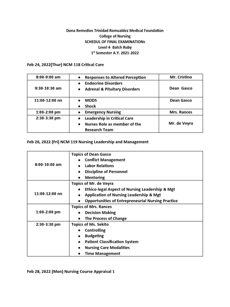 Finals Schedule Ruby PDF Nursing Public Services